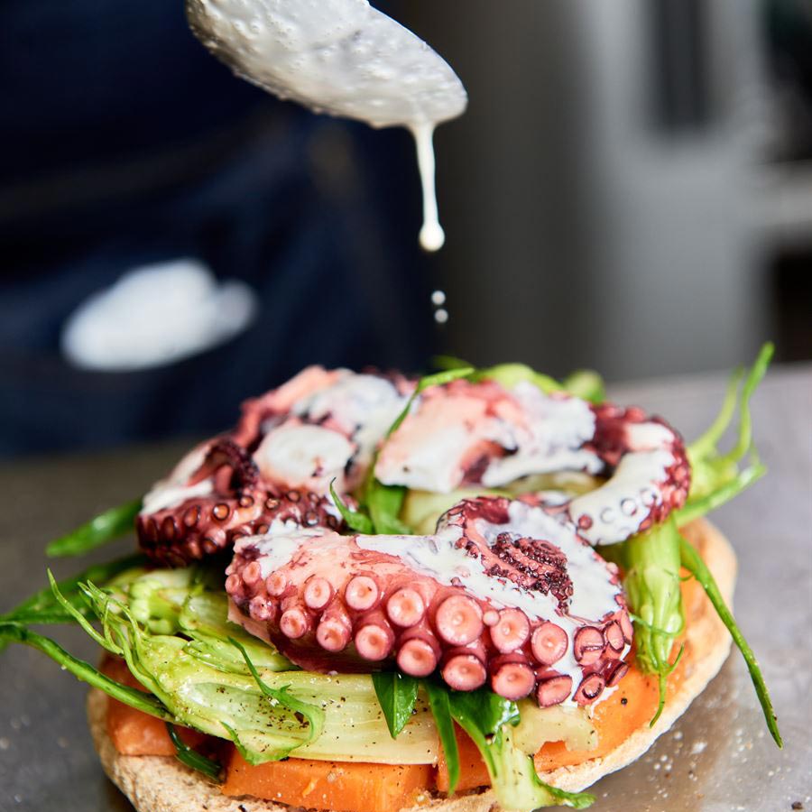- Cooking: 1 minute on sandwich press max temperature or in hoven.