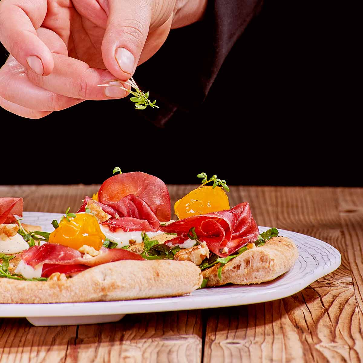 La Base Pizza integrale è stesa a mano secondo la tradizione. Unica nelle sue imperfezioni estetiche, si presenta al palato con il tipico gusto del frumento integrale. L’elevata concentrazione di fibre e l’artigianalità delle lavorazioni garantiscono un’esperienza sensoriale unica. Cottura ideale su mattone refrattario.