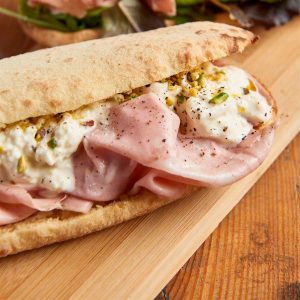 La Ciabatta è un tipico tipo di pane italiano che può essere utilizzato come sandwich. La nostra Ciabatta è fatta con ingredienti 100% italiani e l’impasto è steso a mano in Italia. La Ciabatta è realizzata con Semola di Duro e viene fatta lievitare per 24 ore. Senza conservanti aggiunti e aromi artificiali.