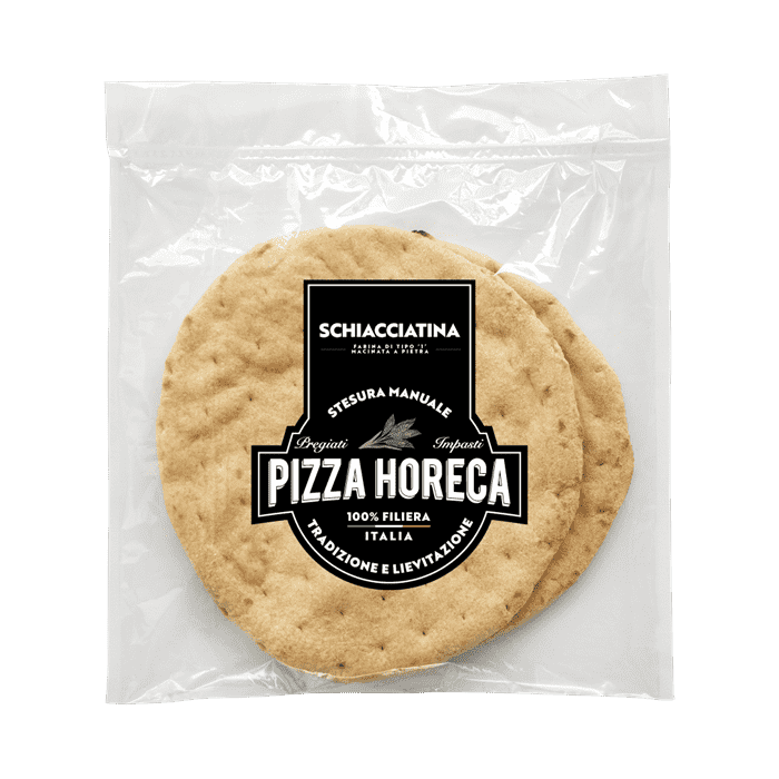 La qualità Pizza Horeca incontra la farina di tipo 1. Decorticata e macinata a pietra con germe di grano, questa farina conferisce alla schiacciatina una consistenza raffinata ed un sapore unico nel suo genere. Ideale per qualsiasi farcitura, ottima anche cotta con solo olio e sale per accompagnare taglieri di salumi e formaggi o antipasti di vario genere.